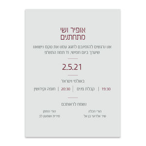 ההזמנה מגיעה על נייר כרומו (סטנדרטי), ניתן לשדרג לנייר נטול עץ או פנינה.