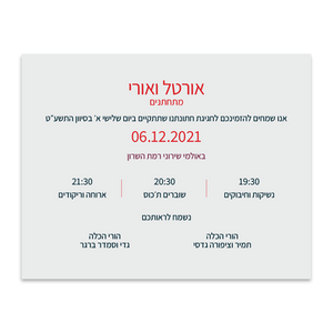 ההזמנה מגיעה על נייר כרומו (סטנדרטי), ניתן לשדרג לנייר נטול עץ או פנינה.