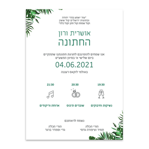 ההזמנה מגיעה על נייר כרומו (סטנדרטי), ניתן לשדרג לנייר נטול עץ או פנינה.
